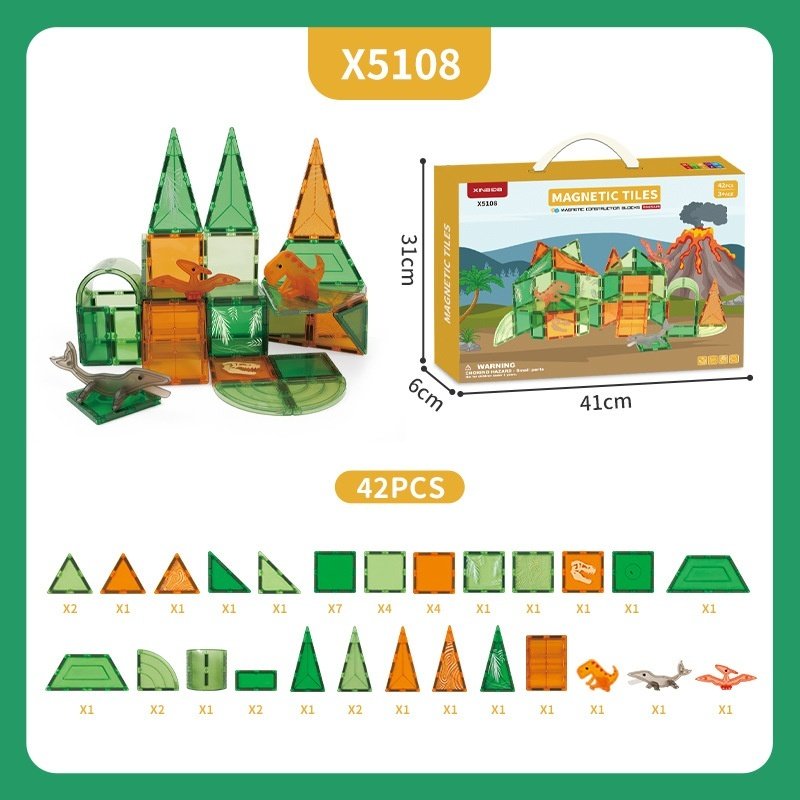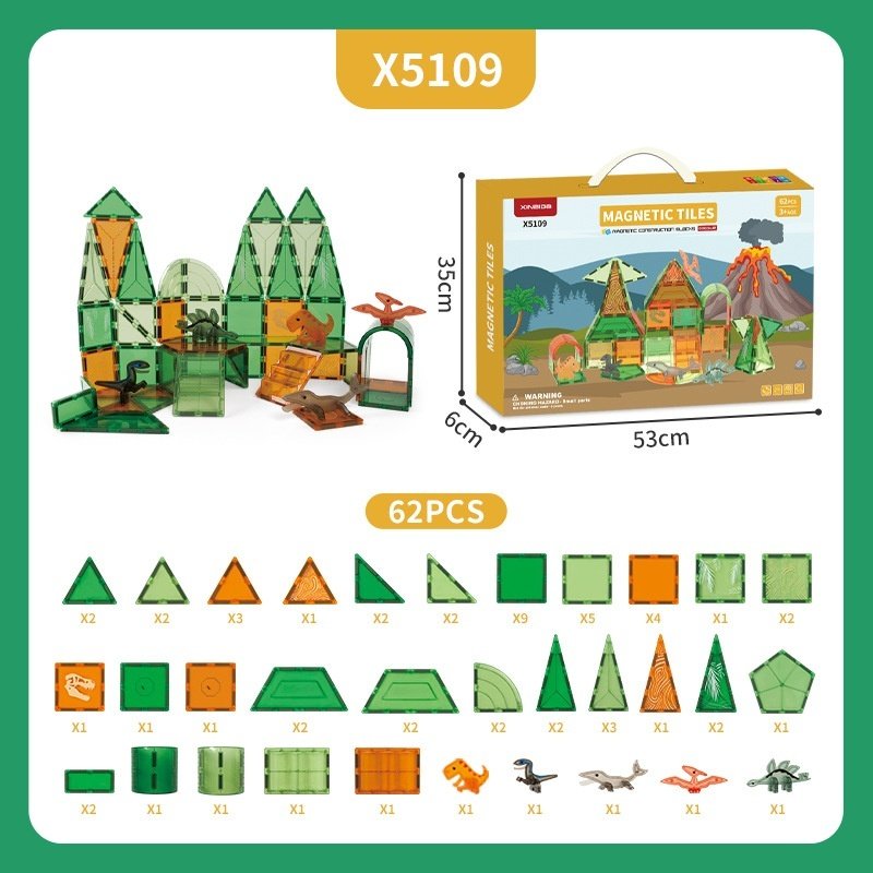 Color: X5109 Dinosaur World Magnetic piece-62PCS,X5108 Dinosaur World Magnetic piece-42PCS,X5107 Dinosaur World Magnetic piece-28PCS